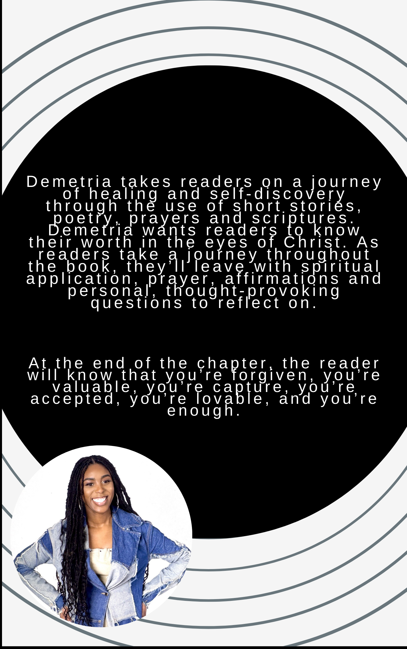 Demetria’s heart is to awaken vision in believers- helping them see Cleary, live boldly, and walk with purpose. Her words carry the assignment of healing, identity, and spiritual confidence, and her greatest desire is that every reader feels seen, strengthened, and spiritual realigned.